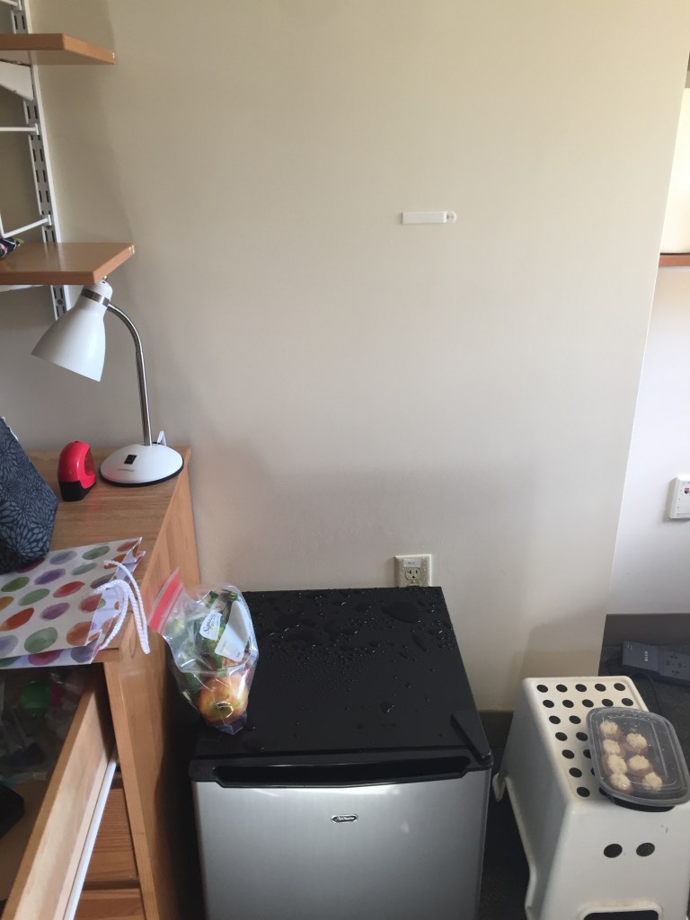 I have moved into my dorm with the help of both of my parents. It was sweet and we got to meet the Nardellis because they came up to the room. Eliana had moved into the room two hours before me. We spent the afternoon running around campus together because there was a leak in our room. Public safety has been called and we requested a work order.