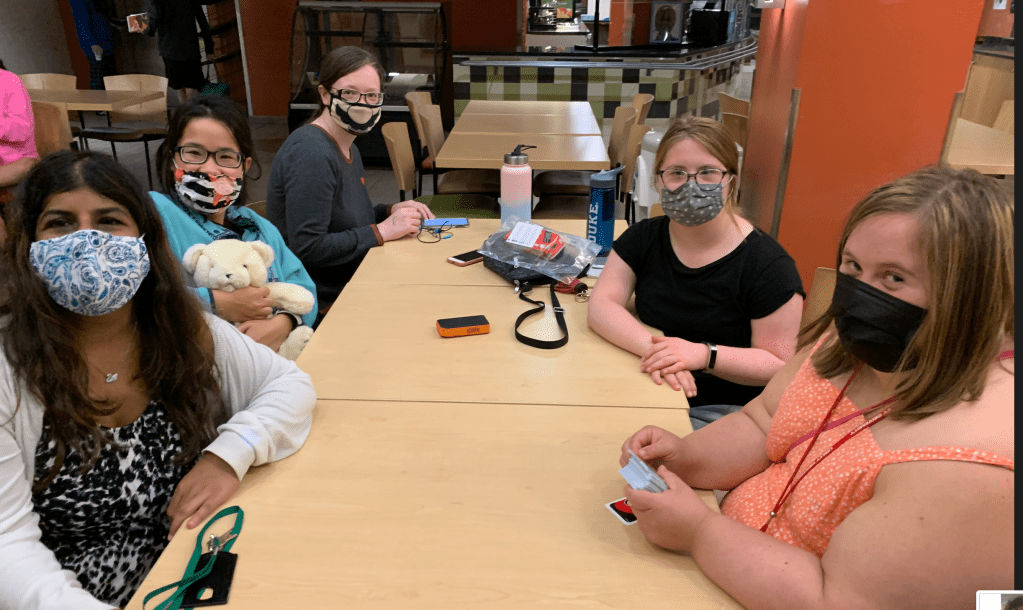 I had a wonderful game night playing Uno with my fellow Threshold colleagues Sydney, Molly, Amira and an undergraduate student named Sarah. We played one hand of cards and decided to play to see who finished in second, third and fourth places. It was really fun and although I did not win, I still had a fun time. My bear Bear-Bear begged me to come and I had no choice but to say yes. There were many games available, but Uno was the winner for my group (mainly because Sydney wanted to play it).