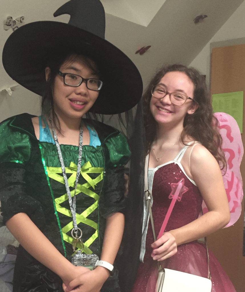 We had a very fun Halloween Party, although we did not go trick-or-treating. We hung out in the Wilbur lounge and mingled. It was going to be a Wizard of Oz theme, but there were many other students that were at the party and did not have that theme. Mia was a cowgirl, Nathalie was a bat, Jillian was a hot mom, Lauren was Kendall, Sydney was Dorothy, I was the Wicked Witch of the West and Eliana was Glinda. We did not have formal food, but we had snacks and candy and they were similar to Ms. Colangelo’s from last year.