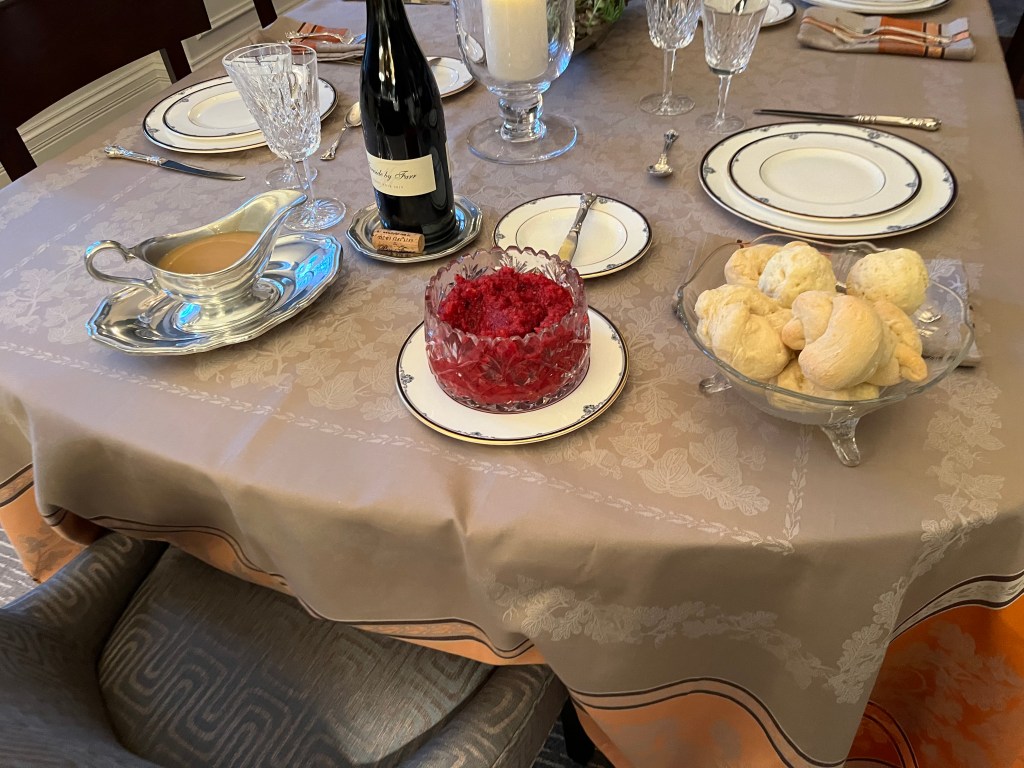 We had a very casual but nice Thanksgiving in Chicago. Most of our cooking, with the exception of a few low-prep items were done on Tuesday and Wednesday night, although we also did when the Macy’s parade was on. I arrived on Tuesday morning and Tom arrived later that evening.