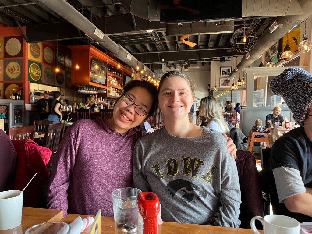 Yesterday morning, we went to Brunch Club with Threshold Alumni. It was at Lulu’s in Allston and it was great food with amazing conversations. We got to see Connor (Rena’s boyfriend), Ellie, Molly Cioffi and a bunch of people that were older. Susanne was there too. I got an egg meal with sausage and potatoes while Mia got french toast.