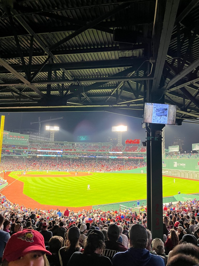 Last night, I headed to Boston for the Red Sox game with a group of current students and alumni. They were even playing the Chicago Cubs and won by one point in the end. There were so many people that I had never met and a few of my friends such as Dylan and Sydney came. I even sat next to them. That night, Dylan brought me home and we took the Green Line to Park Street then the Red Line to Harvard. He even walked me home.