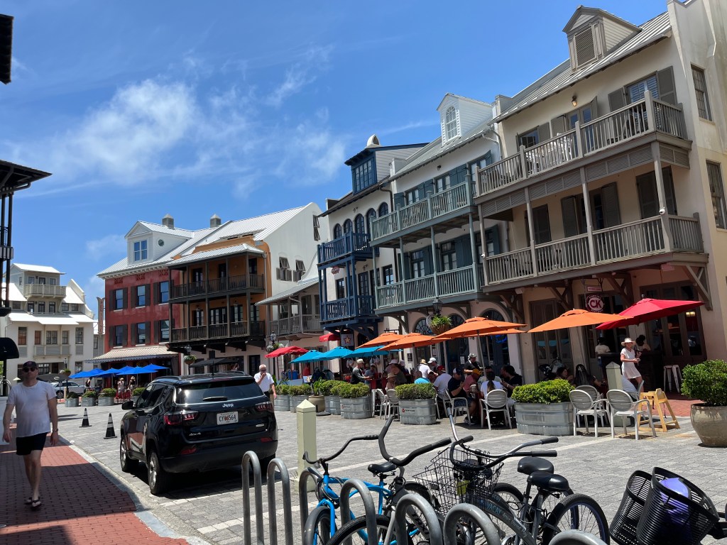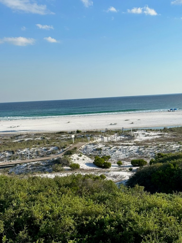 We are back from Watersound, which was a fun beach vacation this year. Although we didn’t have Tom with us, it was still a hit. We did not have a golf cart but were staying right on the beach.