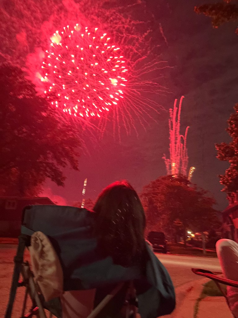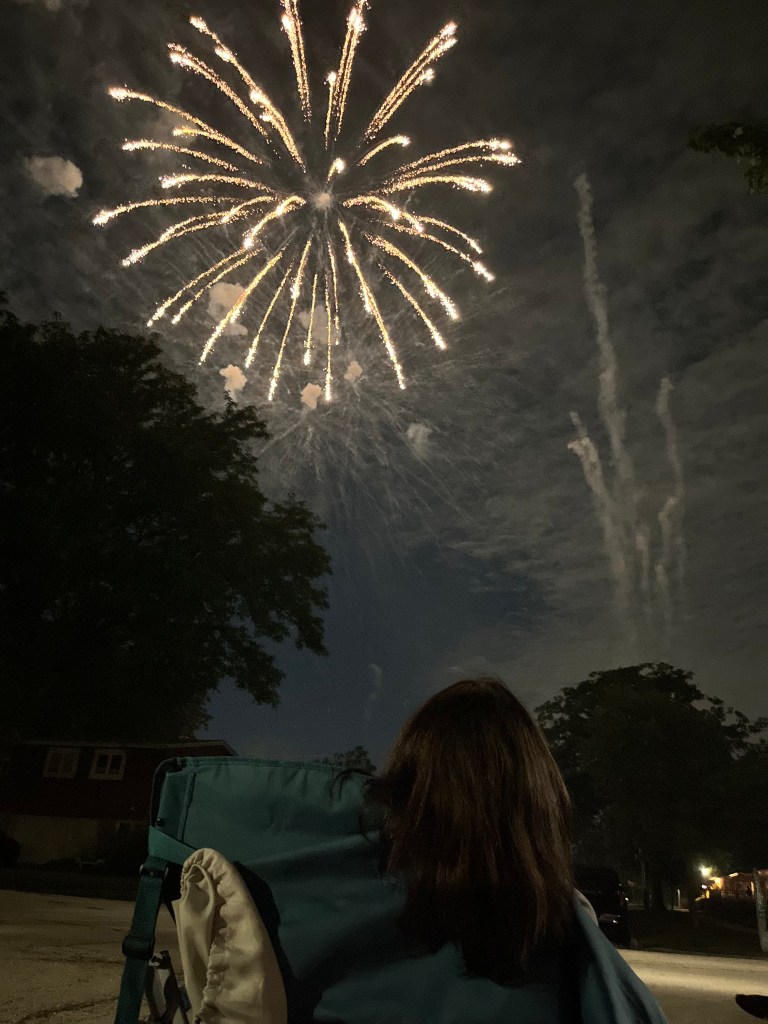 Since a lot was going on in the days leading up to the fourth, it was a bit casual this year. I got a few fun treats from Sweet Alis (a cakee — a sheet cake version of a cookie –, a firework cookie, and a cupcake. Dad and I went to the Morrissey’s house for fireworks, but Mom was not in the mood. Everyone had a nice time together.
