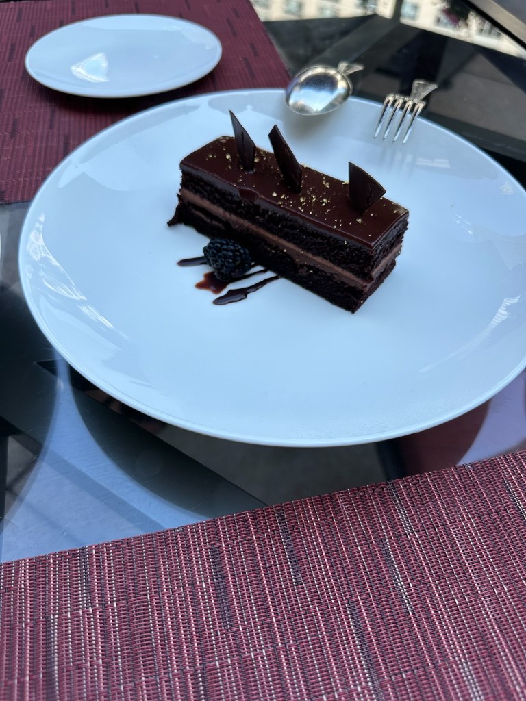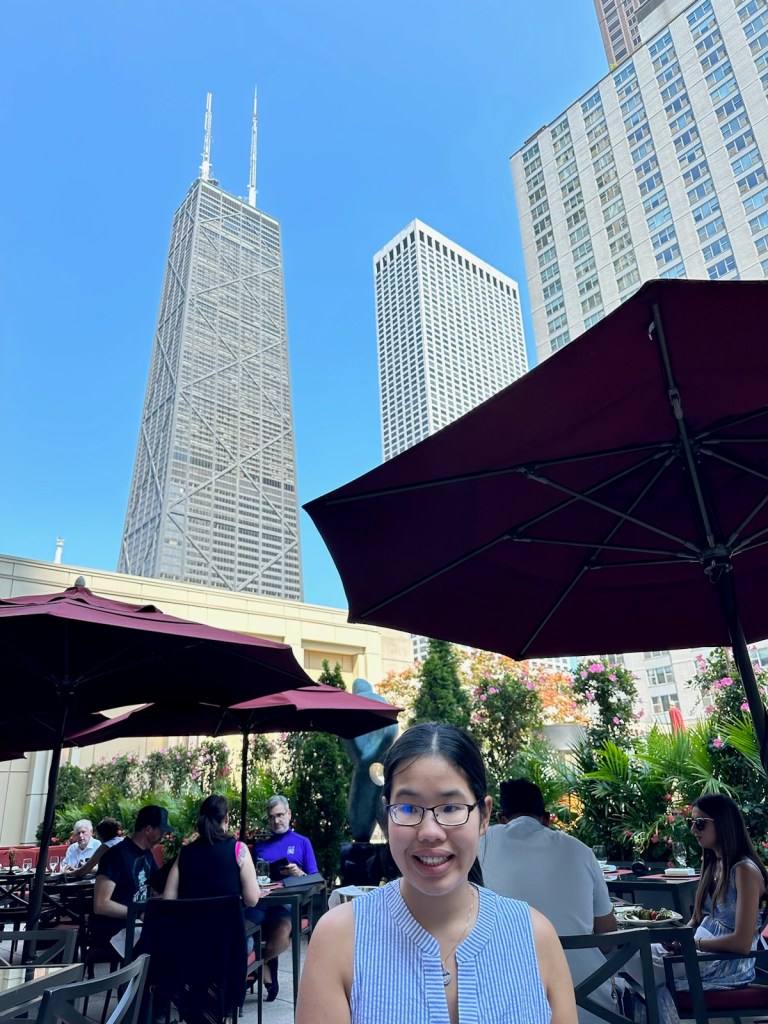 Another year is about to begin and I am very excited to move into my first apartment. We had thought about doing an overnight in Chicago, but the weather was really hot this weekend. Even though we didn’t manage to get to this, we went to lunch at Shanghai Terrace, which is a fancy restaurant inside the Peninsula Hotel. We even got a dessert of Chocolate Cake and Strawberry Sorbet with berries.