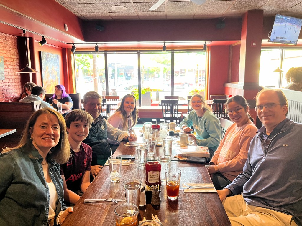 Yesterday was my actual birthday. Lydia called to wish me a happy birthday, which is how I got up while Mia went to breakfast with Adam and Ryan. They later came by the apartment, which I was not expecting. Upon their arrival, I got dressed to look more presentable and we did some karaoke in the living room. After they left to meet folks at the Red Sox Game, Dad came over and we went to a birthday lunch at Cambridge Common. Aunt Erin, Uncle Jamey, Drew and Lydia joined as well. We even had a cake that Dad and Mia had picked for me and the Brenners brought a gift for me and a housewarming gift for me. The day was capped off with a Dad and me dinner at Barcelona.