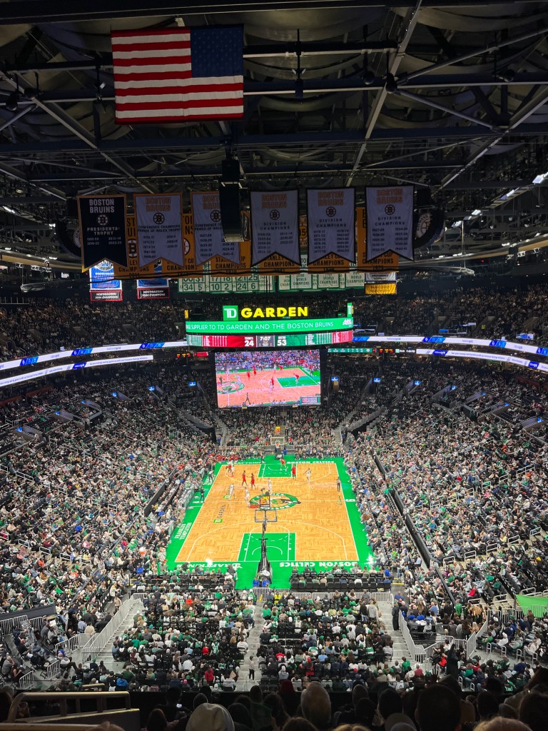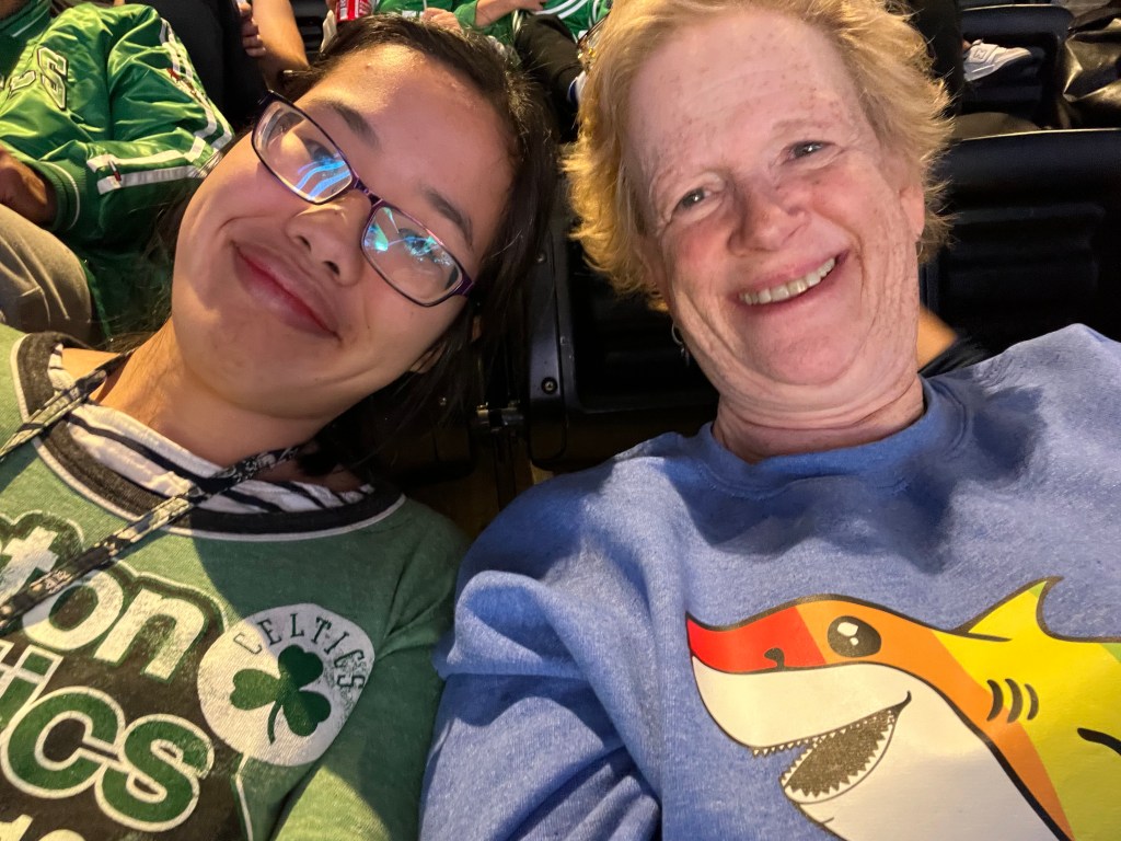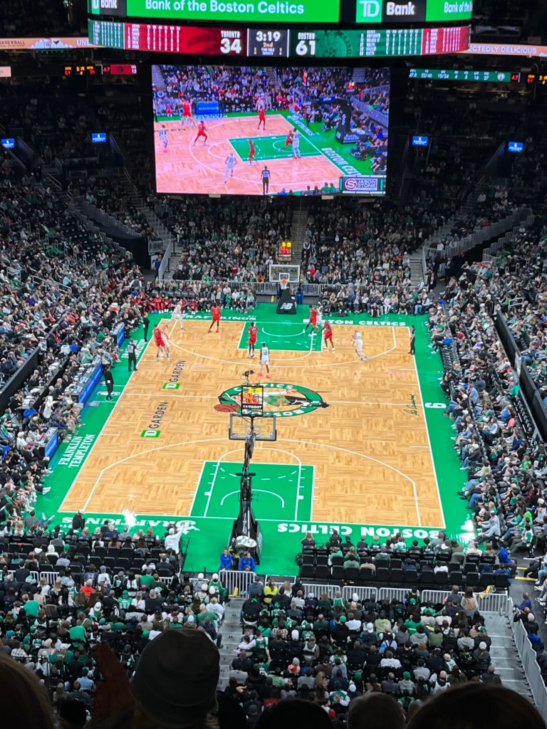 On Sunday, Beth Santos, a group of current students, and alumni, and I went to a Celtics pre-season game. I was seated with Carly, but she was camera shy so we didn’t take a selfie. Since we had a few extra tickets, one of Beth’s friends Michelle came. There were not many current students likely due to the long weekend and I predict that a lot of the students went home. Since the away team was from Toronto, they sang the National Anthem for both Canada and the United States. Oh and the Orange Line was down so we tried to change at Downtown Crossing, but had to go back to Park Street.