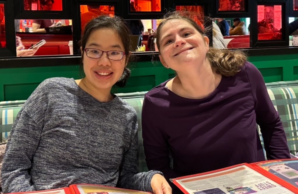 Sunday morning, the four of us met at Friendly Toast for brunch and we even took an Uber because of the rain. Mia got a chocolate chip pancake, I got a mushroom omelet and we both had leftovers the following day. We all stopped at the apartment for some housekeeping pieces and then Mia and I went to a puppy therapy event with other Threshold students and alumni. We, along with Carly, traveled with the students but everyone else met us there. We didn’t do any yoga but we played with the puppies. Rena and her father even came along.